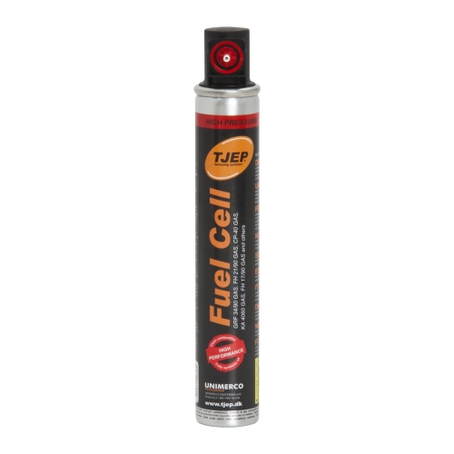 Plynové bombičky TJEP s červeným pruhem s bočním ventilkem pro většinu plynových hřebíkovaček na trhu.