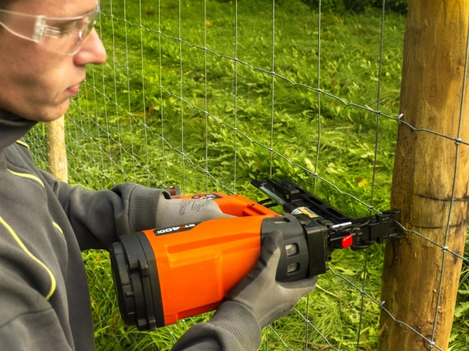 Plynová sponkovačka pro oplocení a drátěnné vedení.