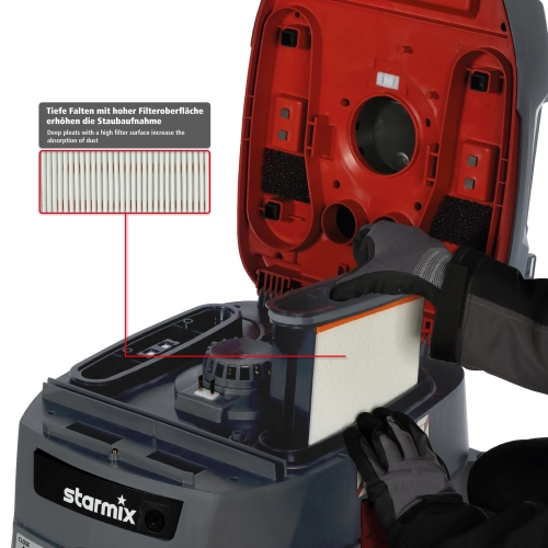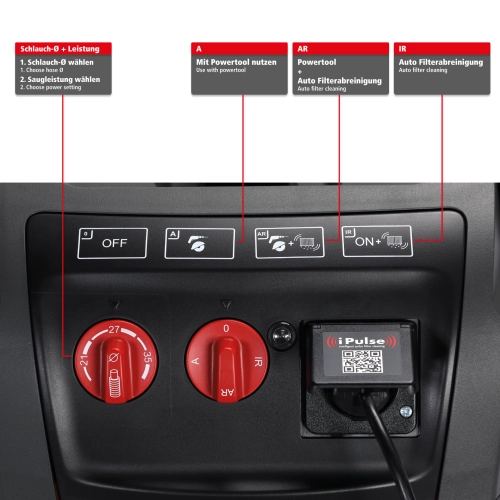 Vysoce inteligentní elektronika měří podtlak před a za filtrem (měření diferenčního tlaku "DDM"). Jakmile je pod nastavenou tovární hodnotou podtlaku, automaticky se aktivuje funkce pulzního čištění filtru a vyčistí oba filtry postupně během 3,5 sekundy bez přerušení práce. Z filtrů se snadno odstraní i ten nejobtížnější a nejproblematičtější prach – například sádra.